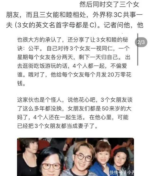 出去逛街吃饭游玩的话,4个人都一起,不偏爱谁,每个月每人发20万零花钱,确保对每位女友“雨露都沾上了”,就这样四人和平相处了二十年。